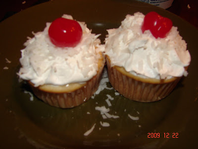 The best cupcakes ever! I call them "Angel wings!" Better as a cake, though. My friend Terre made this years ago, and I never forgot it. I finally got around to making them. You bake a white cake as directed. After it's cooled, poke holes all through it. Pour a can of coconut cream (not coconut milk) all over. After the cream has settled into the cake, top with whip cream, sprinkle coconut and place cherries all over. The cake just melts in your mouth! The coconut isn't overwhelming and the lightness of the whipcream just makes it more dreamy!
